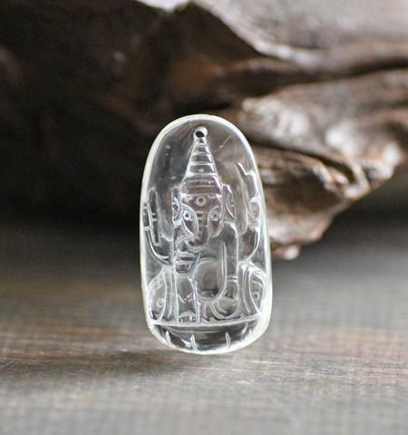 《ガネーシャ》ガネーシャとはガナ(魔人の群れ)のイーシャ(王)を意味します。シヴァ神とその妃パールヴァティーの息子であるガネーシャ神は、智慧と学問の神様であると同時に、商売や財宝をつかさどる神でもあります。