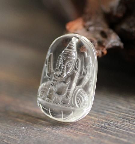 《ガネーシャ》ガネーシャとはガナ(魔人の群れ)のイーシャ(王)を意味します。シヴァ神とその妃パールヴァティーの息子であるガネーシャ神は、智慧と学問の神様であると同時に、商売や財宝をつかさどる神でもあります。