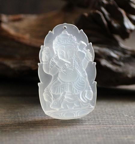 《ガネーシャ》ガネーシャとはガナ(魔人の群れ)のイーシャ(王)を意味します。シヴァ神とその妃パールヴァティーの息子であるガネーシャ神は、智慧と学問の神様であると同時に、商売や財宝をつかさどる神でもあります。